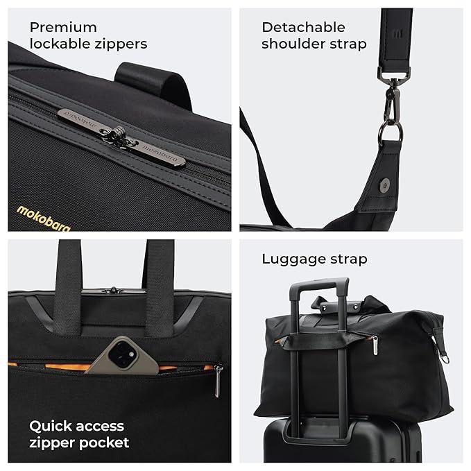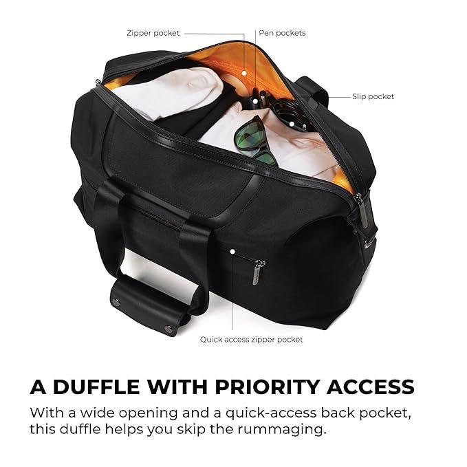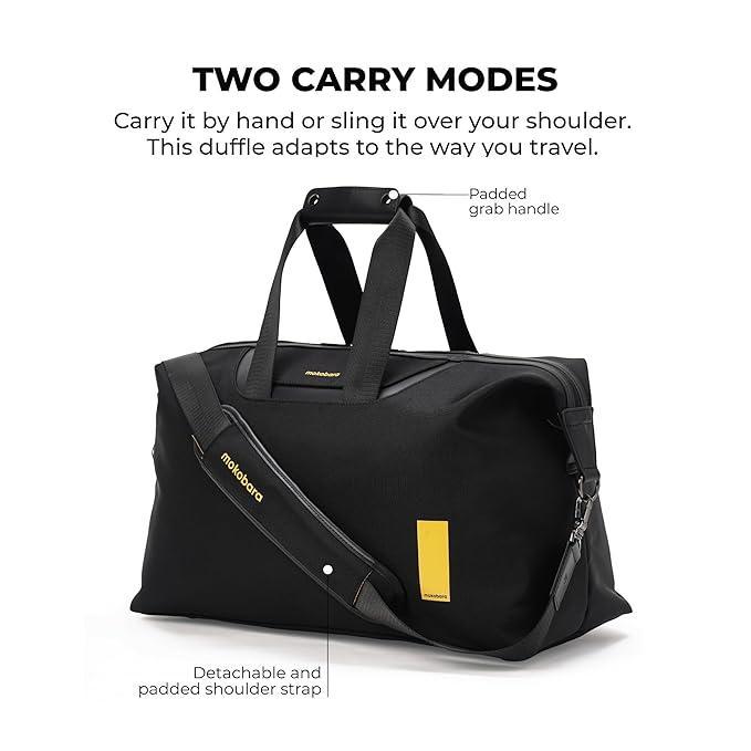 CRAFTED WITH PREMIUM MATERIALS: The Fuji duffle is made with a premium and water-resistant nylon fabric, and features vegan leather trims