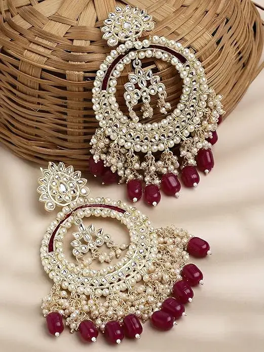 Shining Diva Fashion Latest Stylish Traditional Kundan Chandbali Earrings for Women and Girls