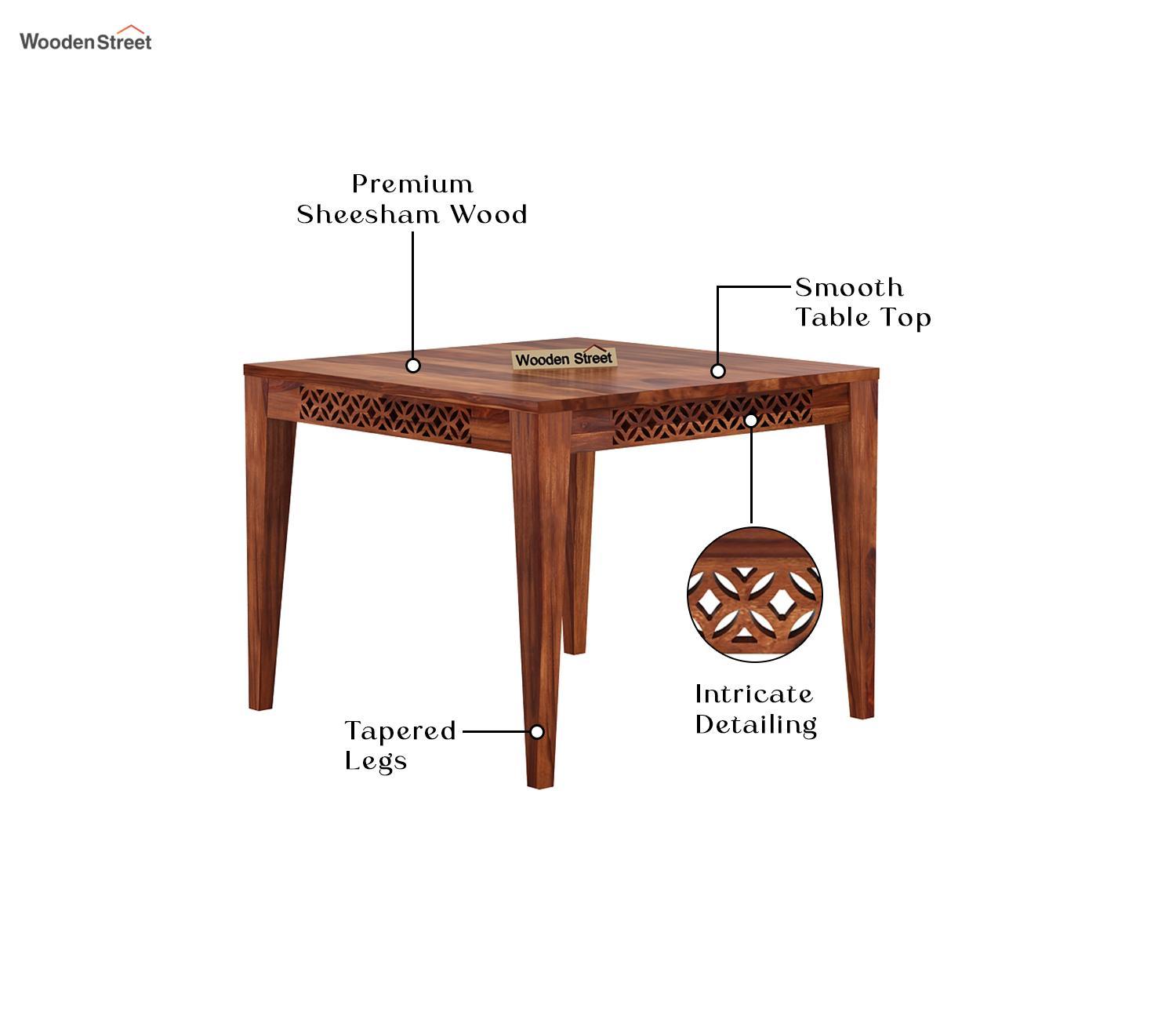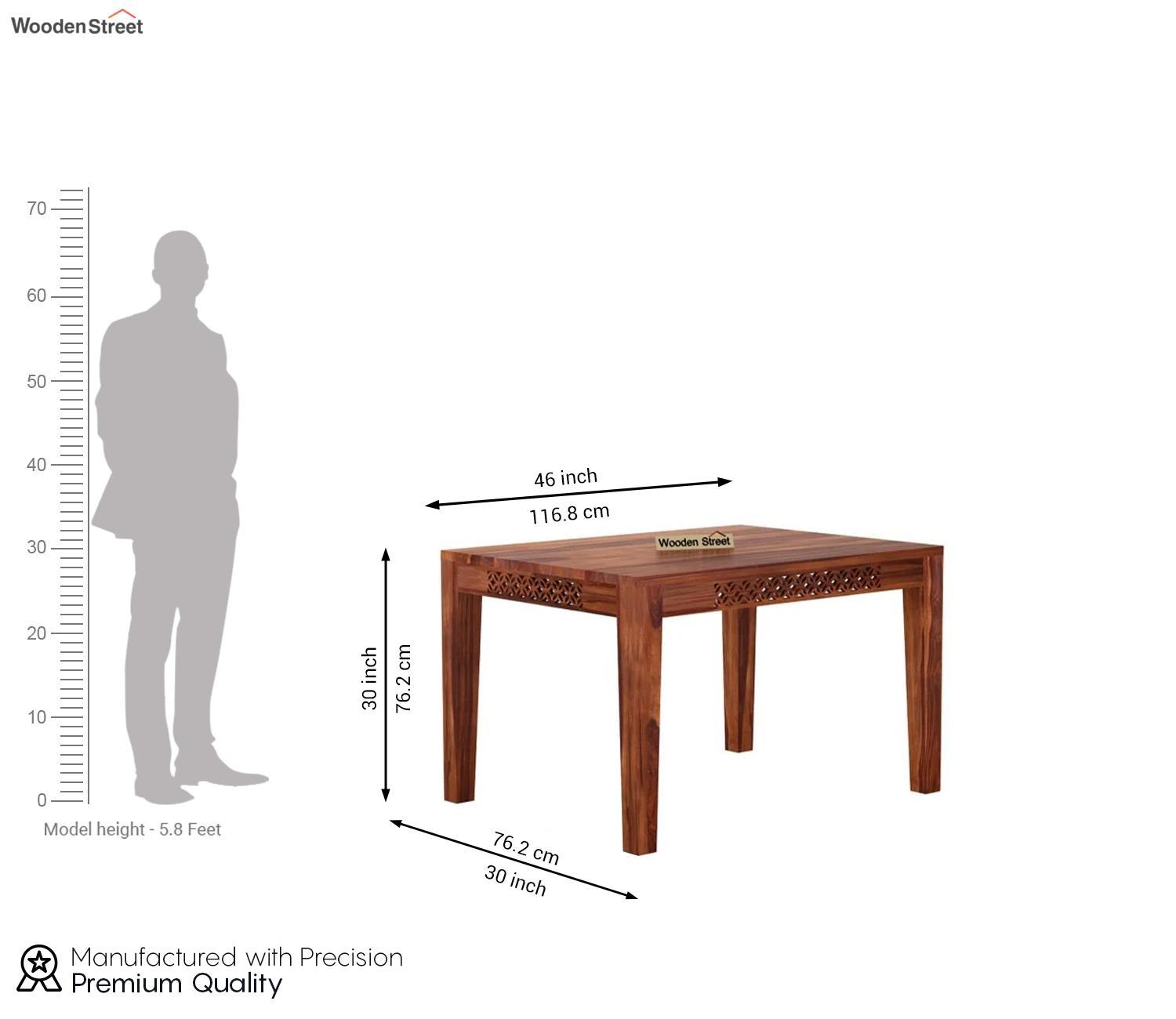 Cambrey compact 4 seater dining set turns out to be a blessing for the ones with a compact dining space. The intricately carved floral patterns on the backrest and the either sides of the table make the dining set a magnificent decor piece. Plus, the bench feature in this furniture unit makes it different from the crowd. And last but not the least, the mushy seat brings all the comfort that one desires.