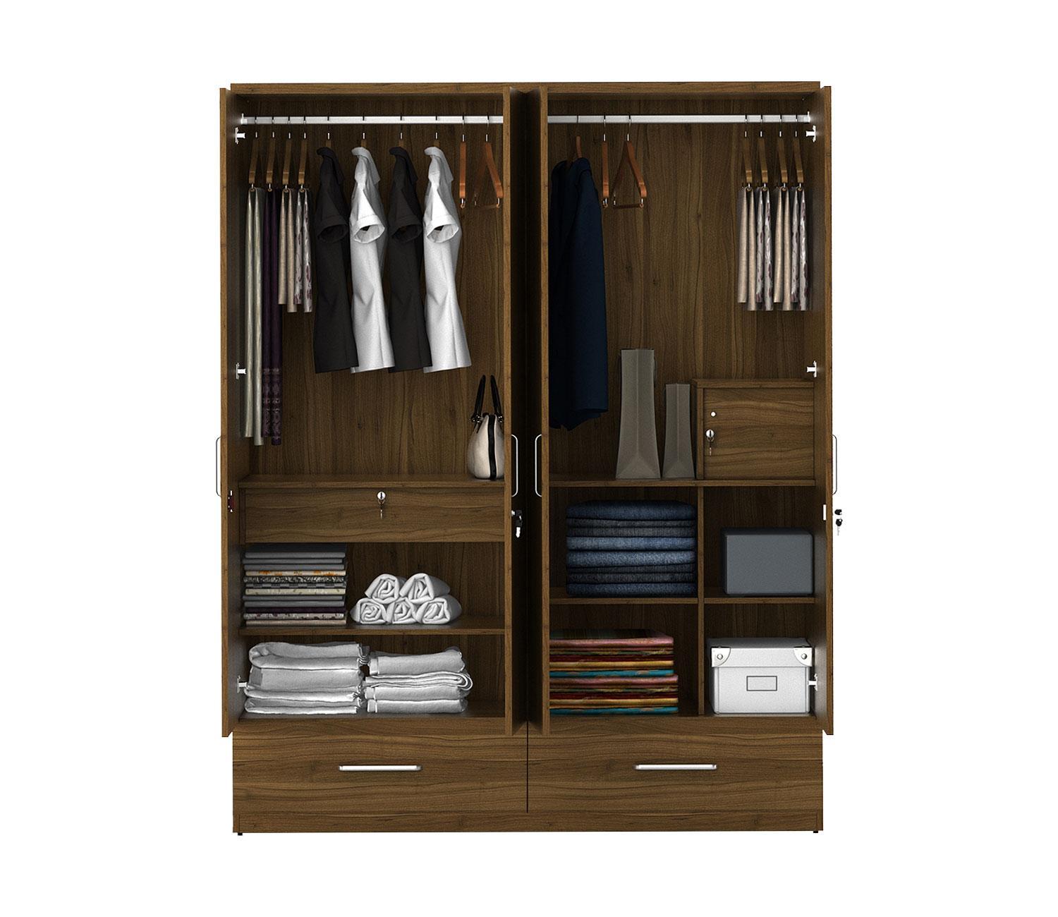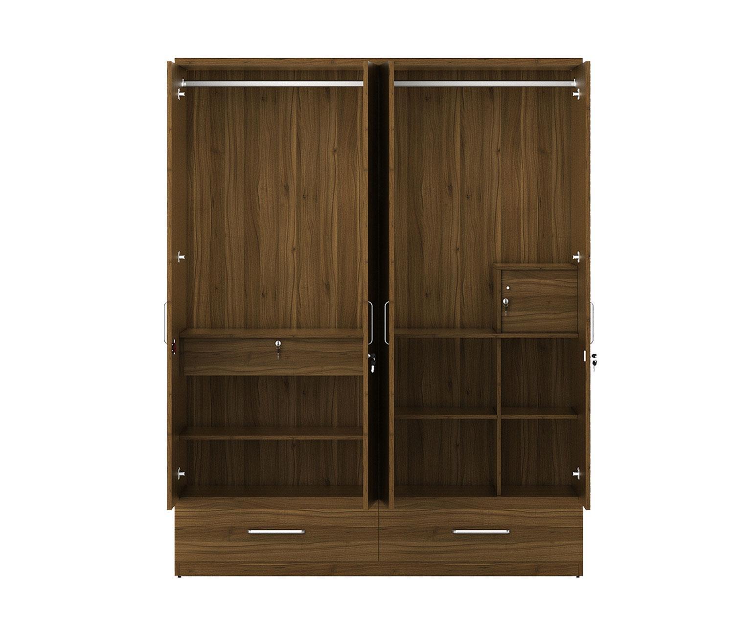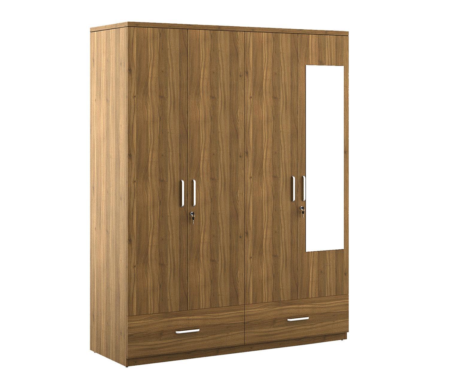 Kosmo Linden 4 Door Wardrobe with Mirror (Exotic Teak Finish)