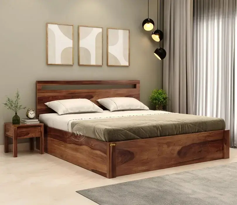 WoodenStrret-Bacon Sheesham Wood Hydraulic Bed With Storage