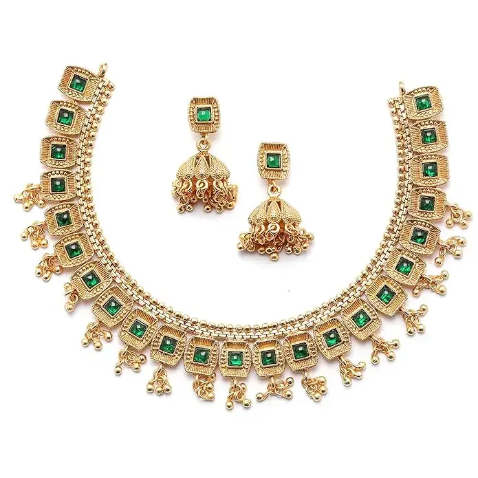 What You Get:- This jewellery set consists of a necklace and a pair of earrings. Antique Gold-Plated Necklace, has Artificial Stone studded detail, secured with a Drawstring closure. A pair of matching Drop Earrings, each secured with a Post and Back Closure.